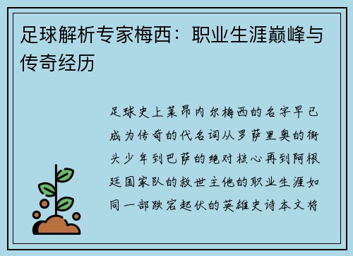 2023年,足球世界再次被一位传奇改写历史。36岁的梅西在加盟迈阿密国际后的首个完整赛季中,以令人惊叹的表现连续打破五项世界纪录,用行动证明年龄不过是数字。从单赛季助攻数到最年长金靴得主,从连续进球场次到点球命中率,再到职业生涯总进球数,阿根廷巨星用教科书般的表现重新定义现代足球的极限。本文将深...